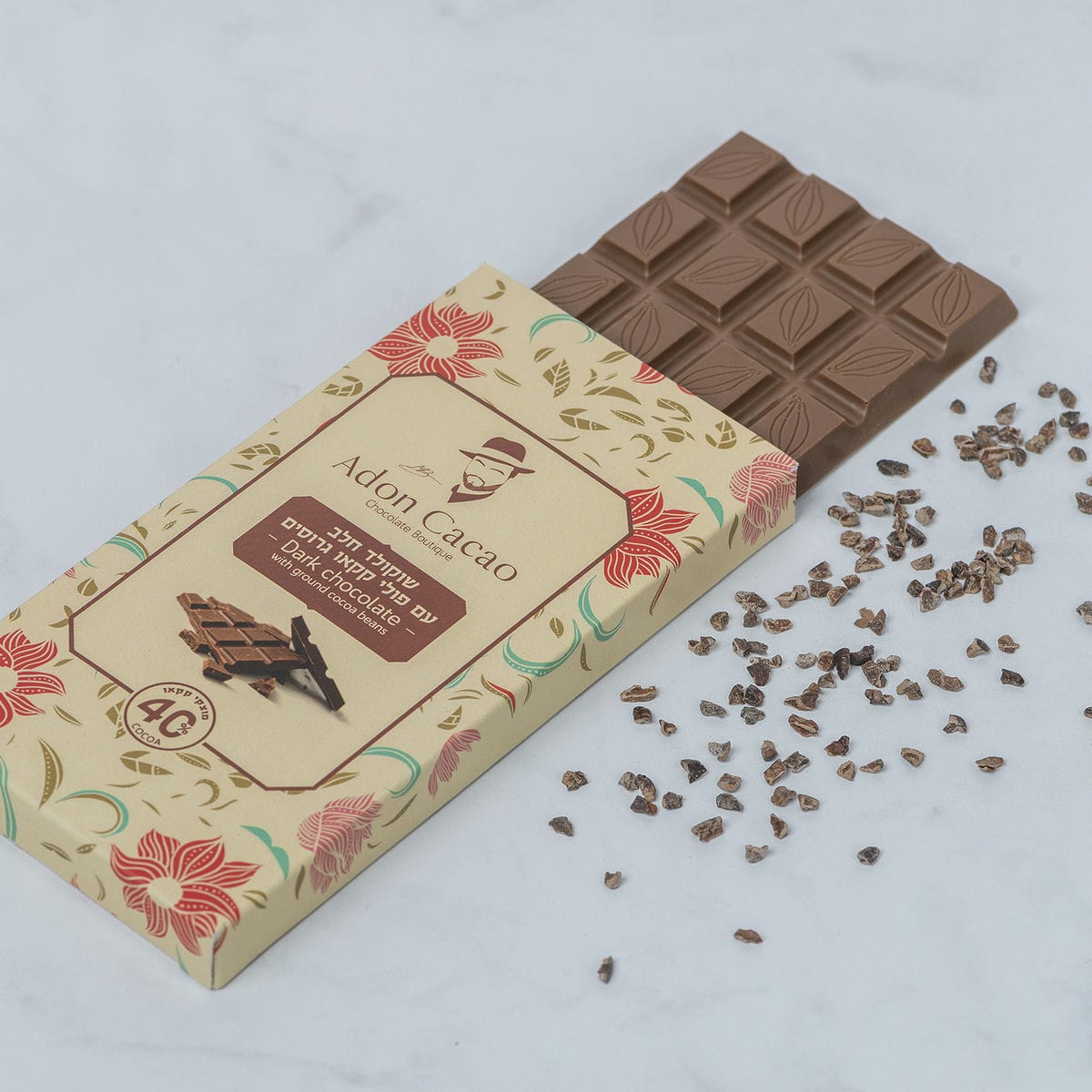 שוקולד חלב 40% עם פולי קקאו גרוסים